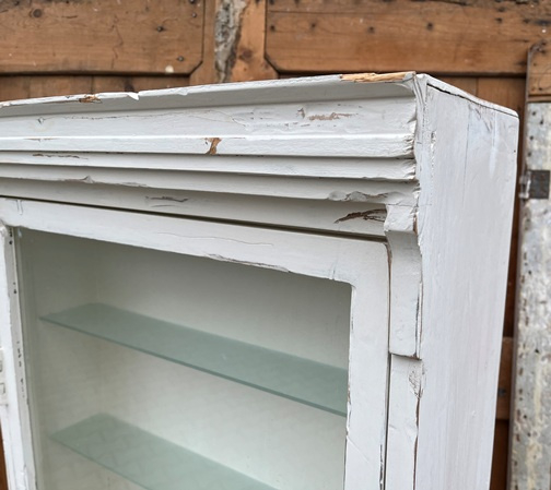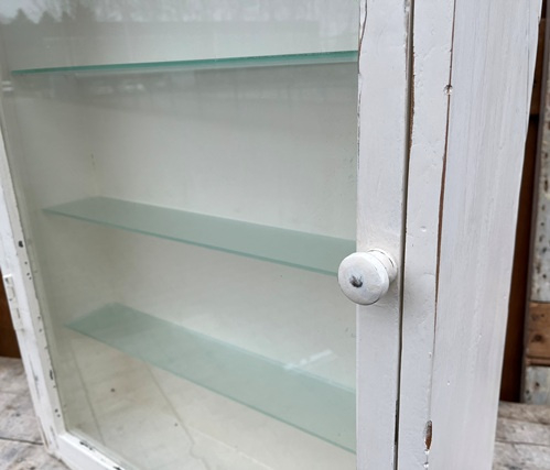 Zeer fraaie en opvallende vitrinekast / halkast / boeken kast / pronkkast met één deur met glas en vier schapjes van glas.