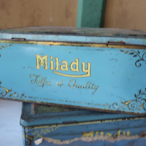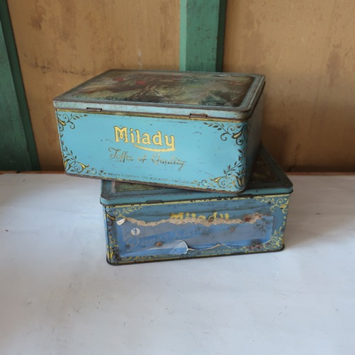 Set van twee originele blikken / pictorial tins van Milady Toffee of Quality.