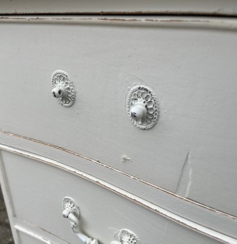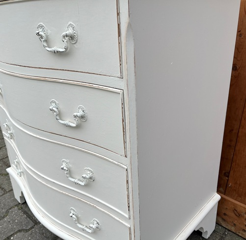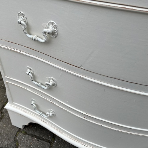 Geschilderd in de kleur zacht wit (mat) en licht doorgeschuurd voor een fraai brocante effect.