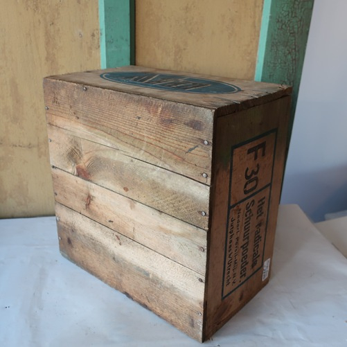 Originele kist van ATA F30 Persil Schuurpoeder, met fraaie teksten aan de zijkanten: