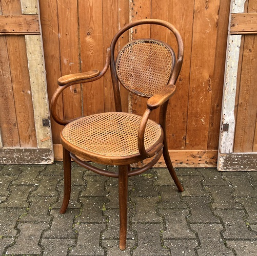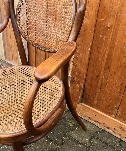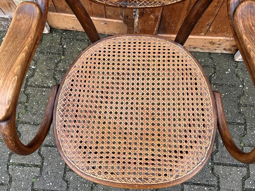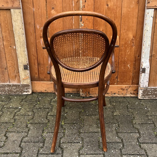 Het betreft nummer 11 van Thonet (gemerkt aan de onderzijde) en ontworpen door Joseph Hoffmann.