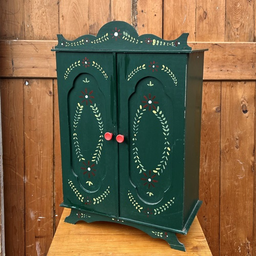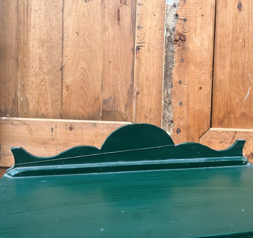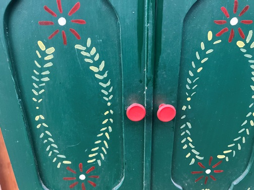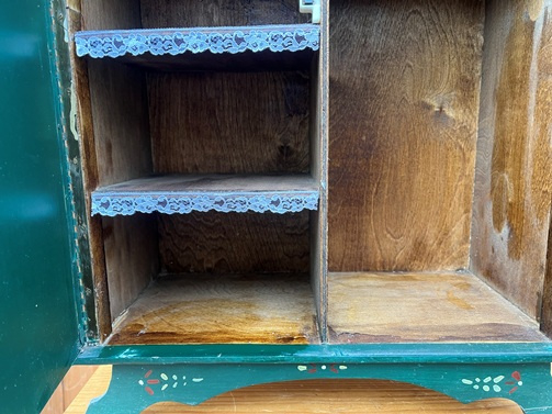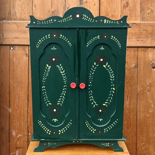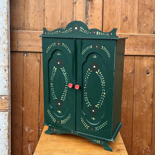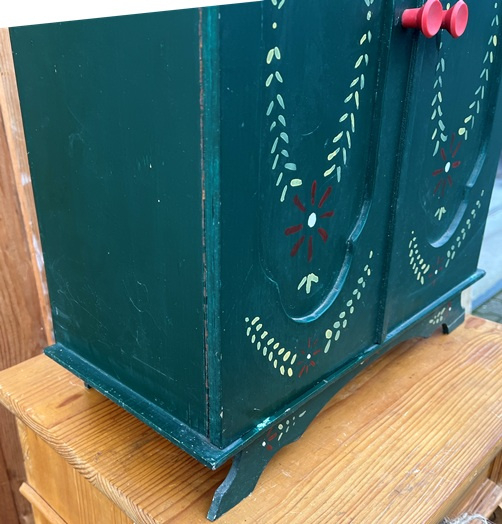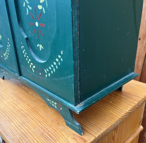Geschilderd in de kleur groen en heeft (soort van) Hindeloopen motief / Hindelooper schilderwerk.