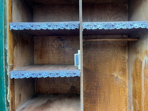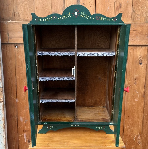 Leuke hang-/legkast voor poppen / poppen kleding kast van hout.