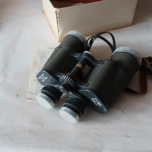 Verrekijker vintage 7 x 50 grijs retro hoes