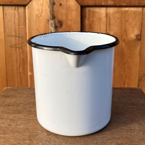 Maatbeker 2 liter emaille brocante wit rand zwart
