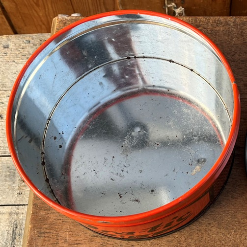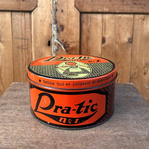 Origineel rond blik van. Pra-tic mop, circa 1930.