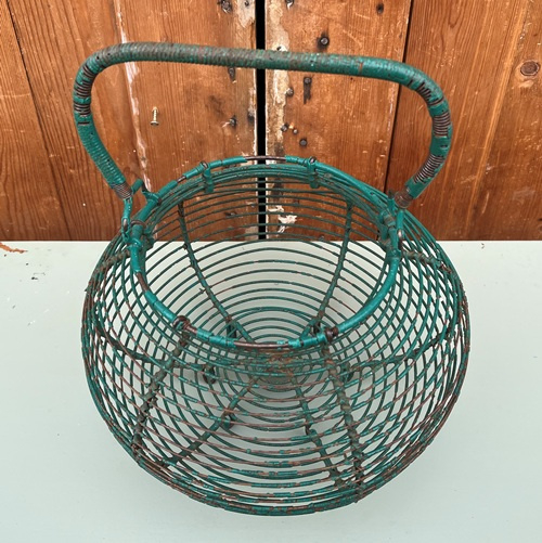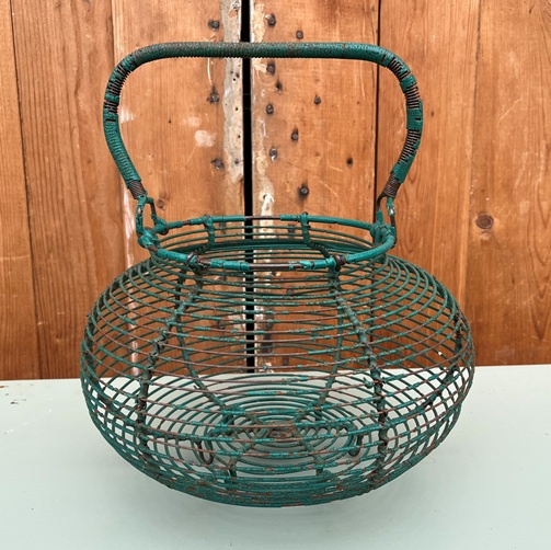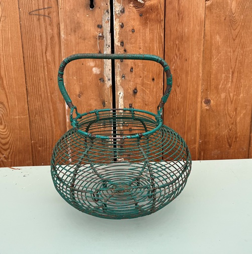 Zeer fraai en gewild: originele en metalen draadmand, eiermand, etc.