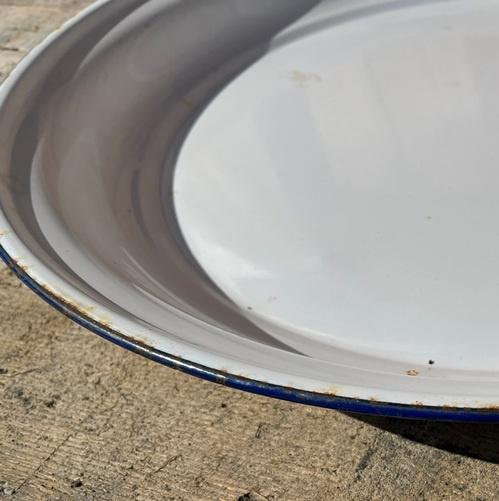 Schaal rond emaille Ø 50 cm wit origineel