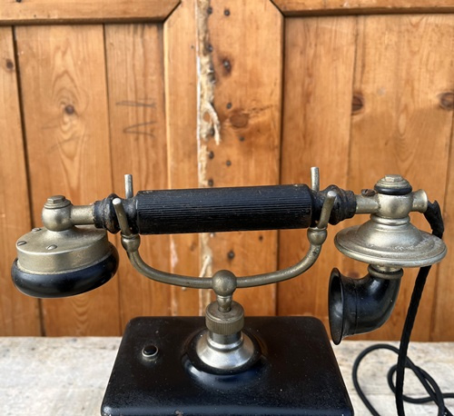 Originele en antieke Jydsk handzwengel telefoon / telefon / tafeltelefoon uit Denemarken.