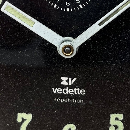 Wekker met opschrift Vedette repetition en fraaie patina uitstraling.