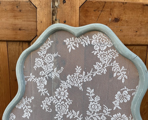 Geschilderd in de kleur grijs / groen en licht doorgeschuurd voor fraai brocante effect..